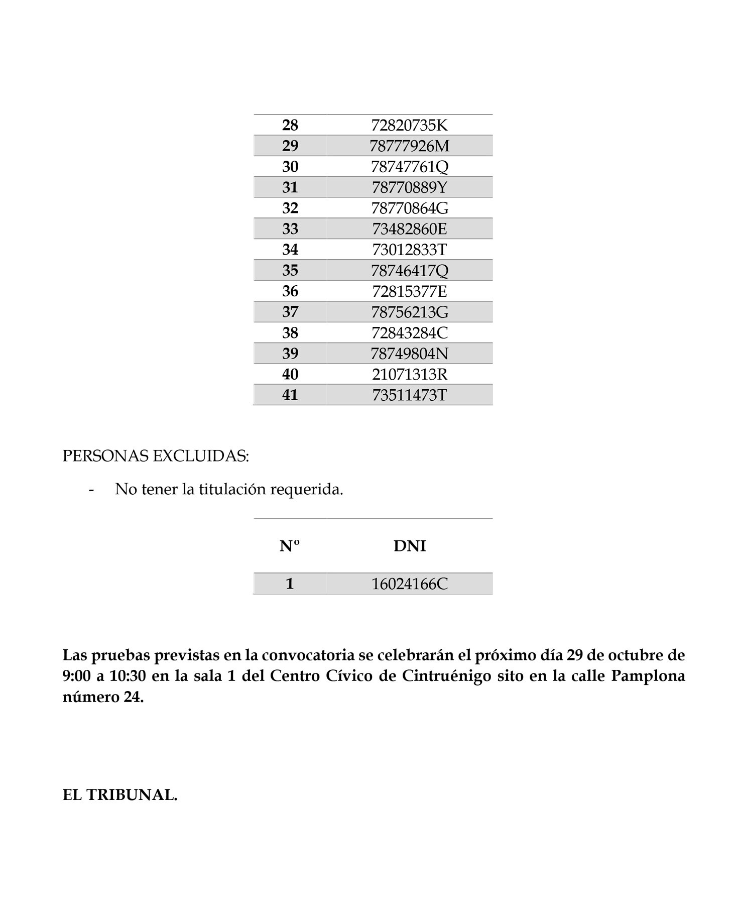 Lista de personas admitidas y excluidas de la convocatoria de Servicios Sociales de Base de Cintruénigo y Fitero.