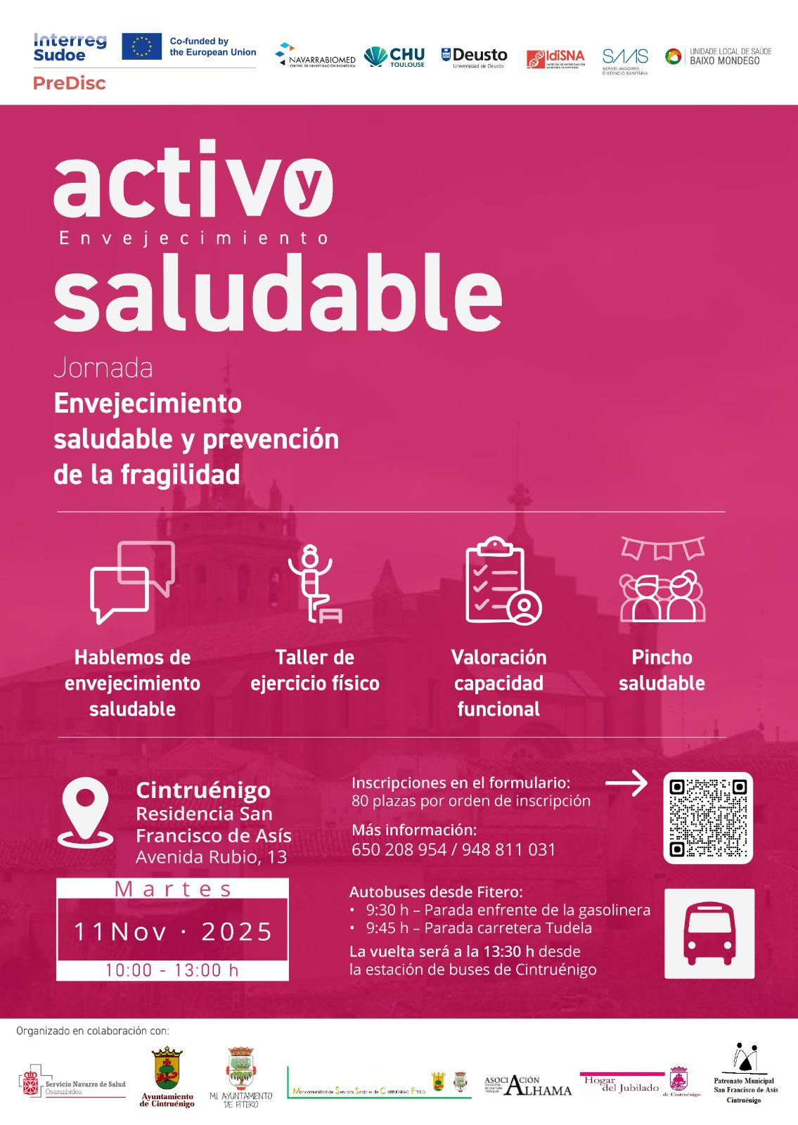 Participa en la jornada de envejecimiento saludable y prevención de la fragilidad organizada por la Unidad de investigación de Geriatría y Envejecimiento Activo de Navarrabiomed, en colaboración con el SNS-Osasunbidea y los Ayuntamientos de Cintruénigo y Fitero.