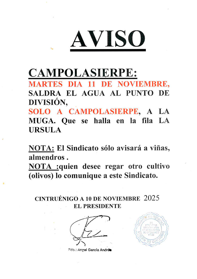 AVISO SINDICATO DE RIEGOS