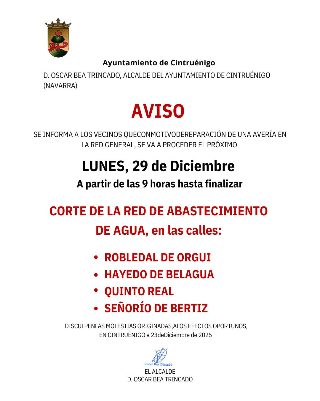 Lunes 29 de diciembre Desde las 09:00 horas Más información y calles afectadas en documento adjunto.
