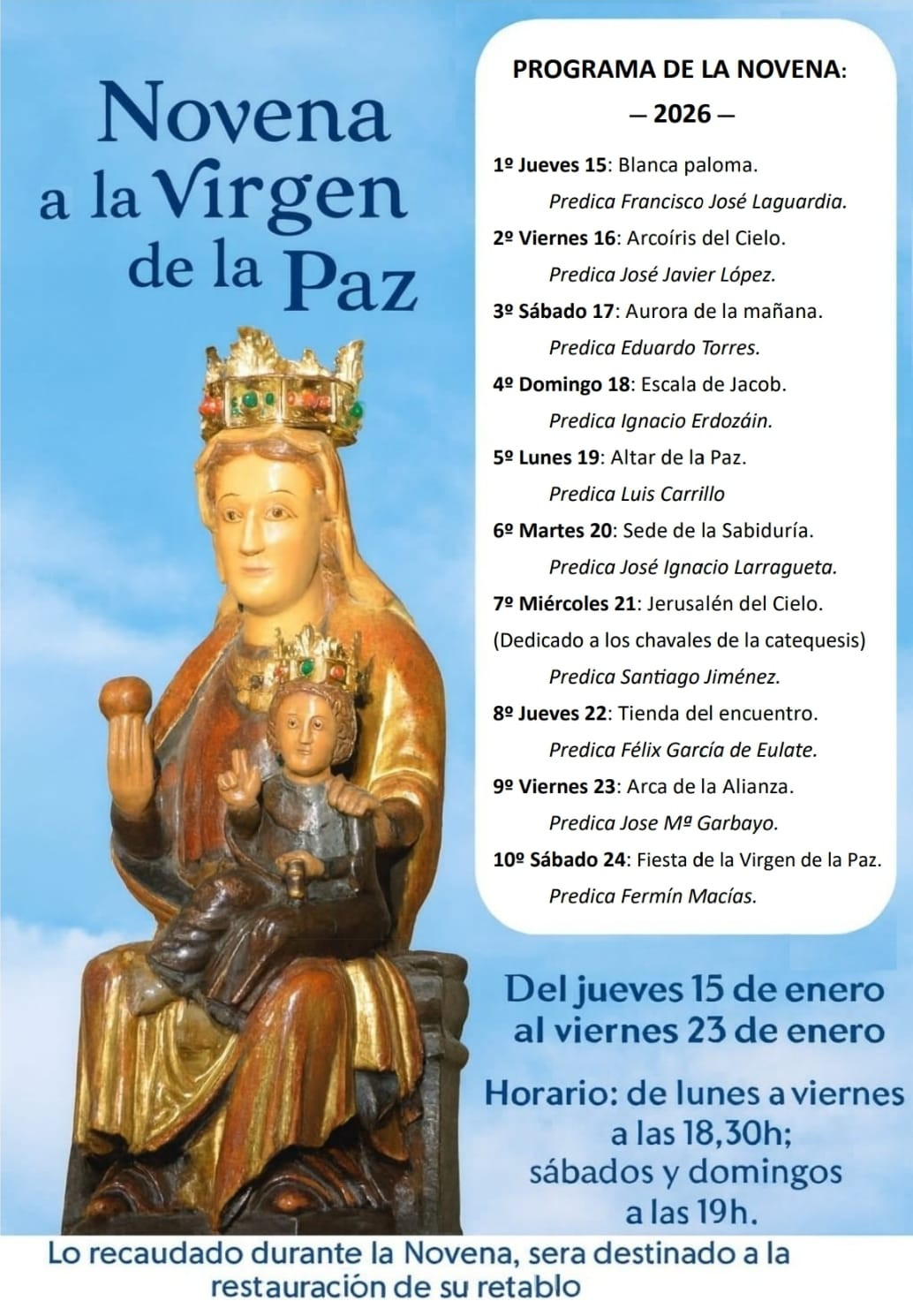 La *colecta* extraordinaria de estos días será destinada a la *restauración de su retablo*.