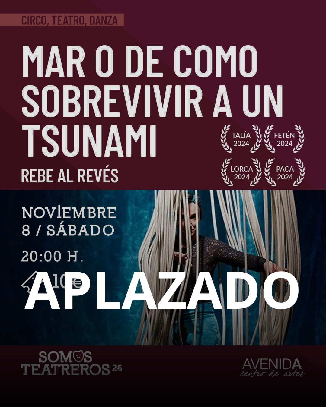 Sentimos comunicar que, por motivos de salud de la protagonista, el espectáculo “Mar o de cómo sobrevivir a un tsunami” previsto para este sábado se p...