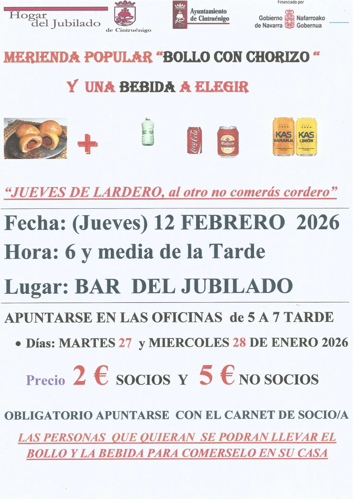 Para actividades deportivas y culturales Cintruénigo 2026.