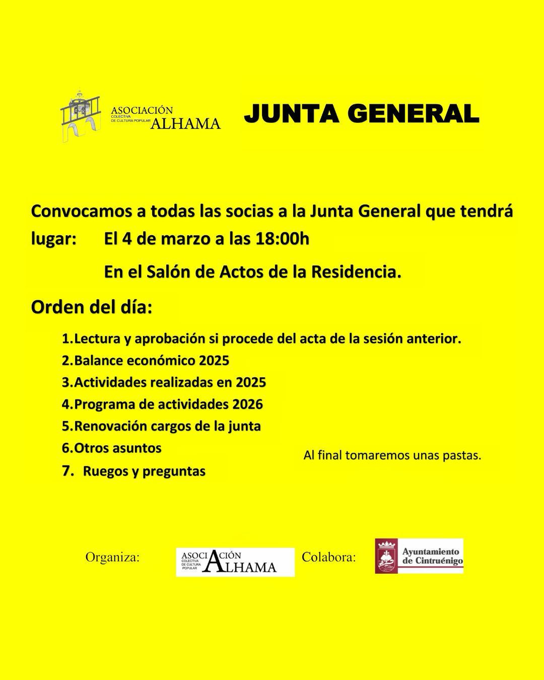 La Asociación de Mujeres Alhama convoca a todas sus socias a la Junta General.