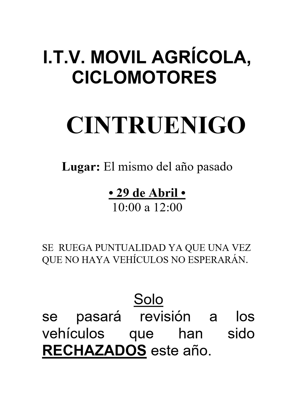Más información en carteles adjuntos.