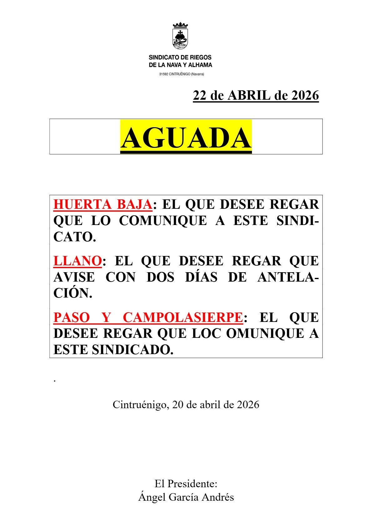 Hasta el 20 de abril de 2026.