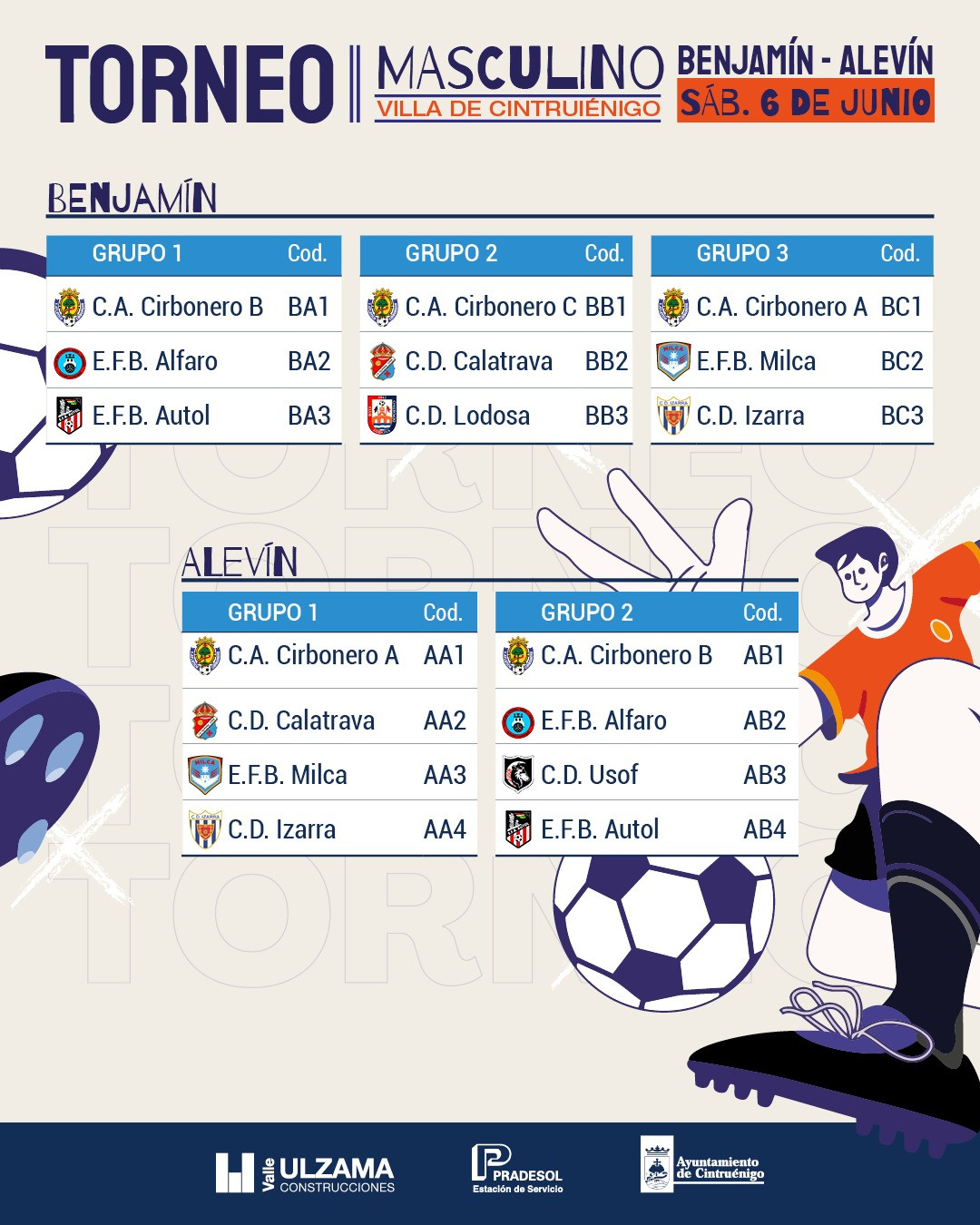 Torneo de fútbol masculino para categorías Benjamín y Alevín, con 17 equipos p...