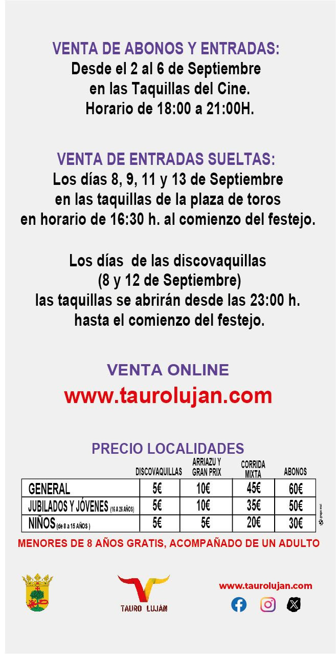 Disponibles en Cine Avenida o en la web taurolujan.com
