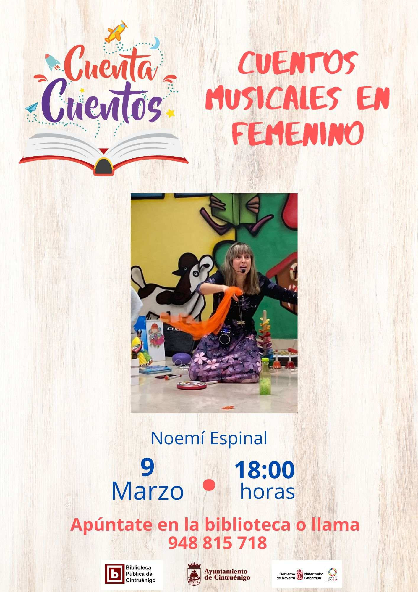 Noemí Espinal presentará cuentos musicales en femenino. Apúntate en la biblioteca o llama al 948 815 718
