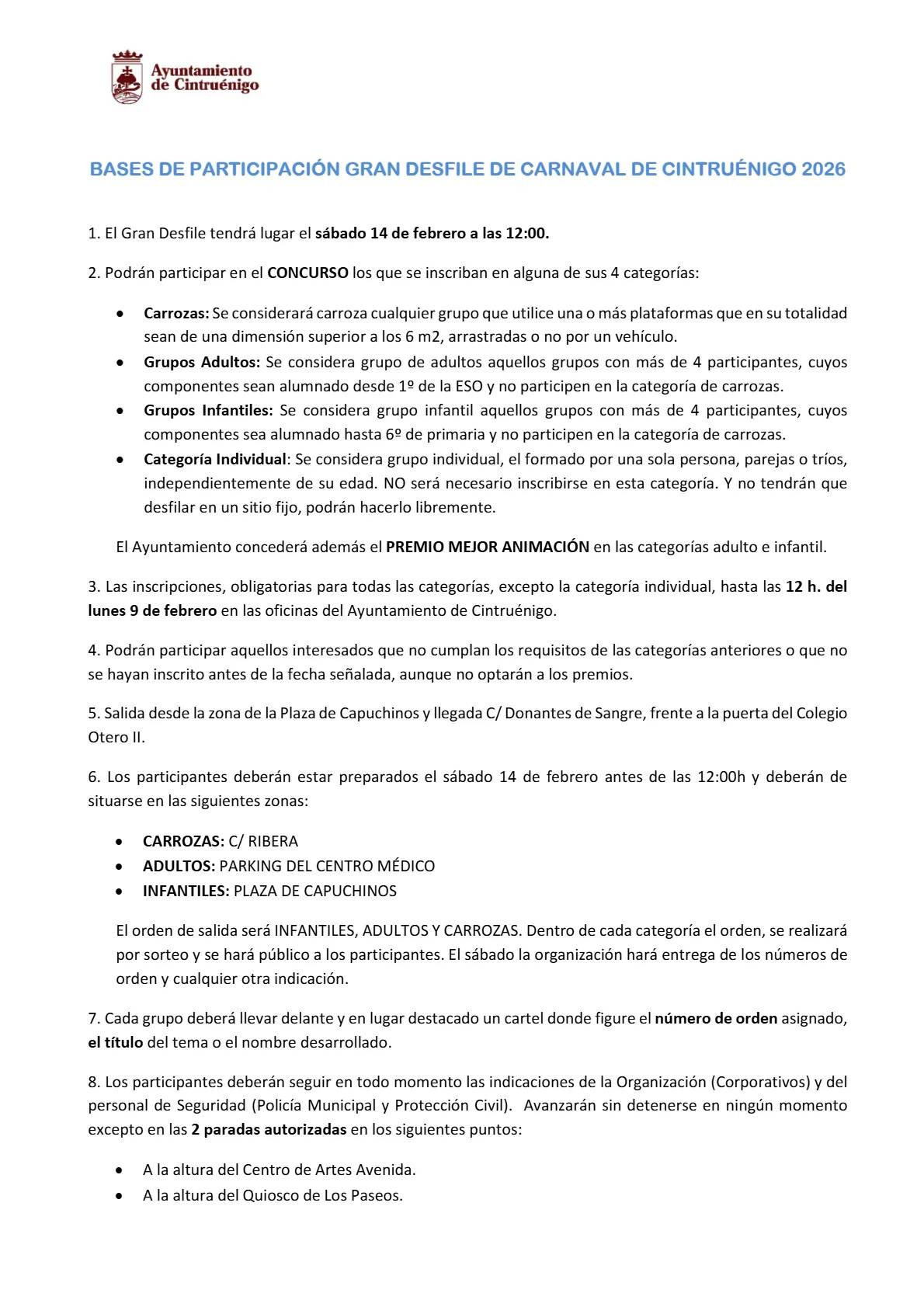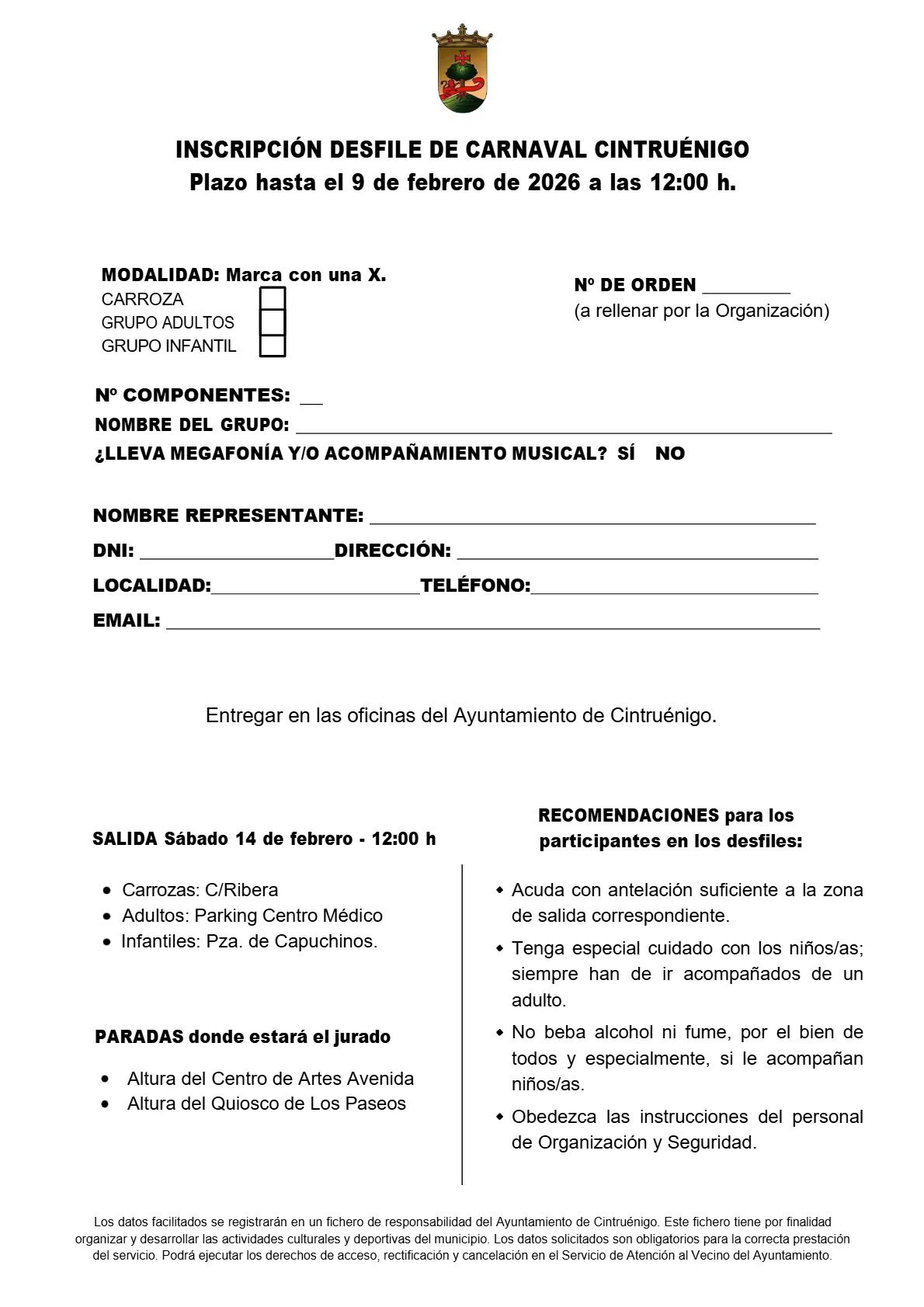 Los documentos para la inscripción se podrán descargar en la pagina web del Ayuntamiento de Cintruénigo y pulsando en "+ Info".