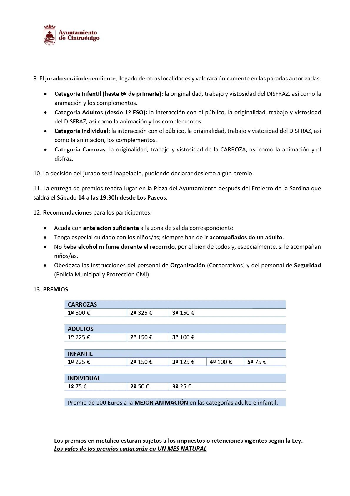 Bases del desfile de carnaval y premios en imágenes adjuntas.