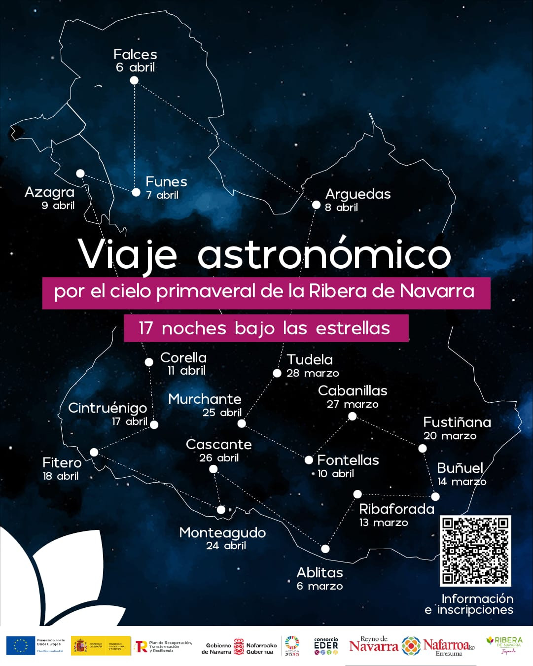 06/3 en Ablitas, 13/03 en Ribaforada, 14/03 en Buñuel, 20/03 en Fustiñana, 27/03 en Cabanillas, 28/03 en Tudela "LA PEÑICA", 06/04 en Falces, 07/04 en Funes, 08/04 en Arguedas, 09/04 en Azagra, 10/04 en Fontellas, 11/04 en Corella, 17/04 en Cintruénigo, 18/04 en Fitero, 24/04 en Monteagudo, 25/04 en Murchante y 26/04 en Cascante.
